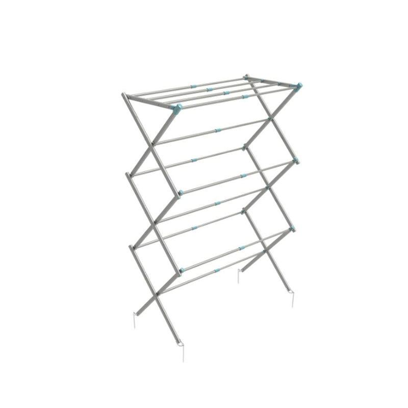 Der faltbare Wäscheständer mit 3 Ebenen bietet ausreichend Fläche um frisch gewaschene Wäsche draußen trocknen zu lassen. Dank der Klappfunktion kann dieser platzsparend verstaut werden und passt somit in jedes Wohnmobil oder Wohnwagen.