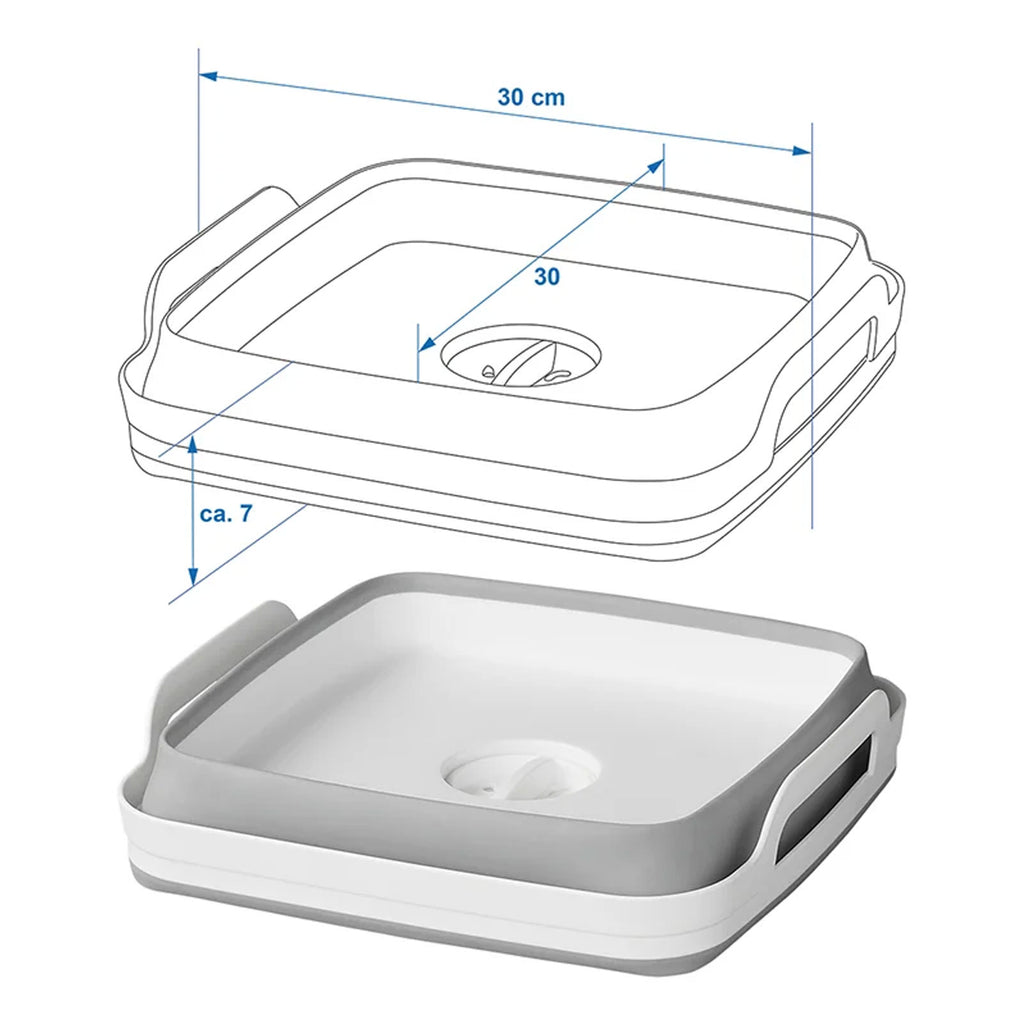 Ein unverzichtbares Utensil für Deinen nächsten Camping Urlaub! Durch den innovativen Faltmechanismus, ist der Korb gefaltet auch auf kleinstem Raum verstaubar. Die Griffe erleichtert den Transport des Geschirrs zum Waschraum.