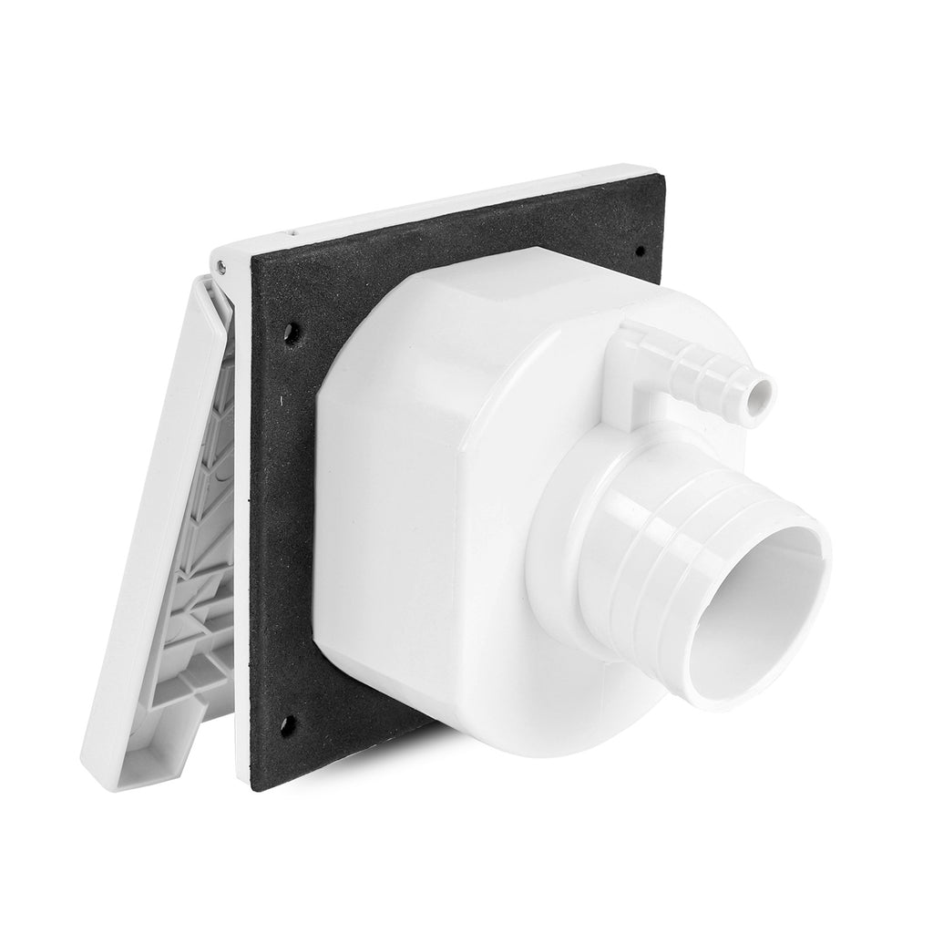 Die Außensteckdose wird mit dem im Lieferumfang enthaltenen Montagematerial, bestehend aus Dichtung und Schrauben montiert. Der Durchmesser der Schlauchleitung beträgt 40mm