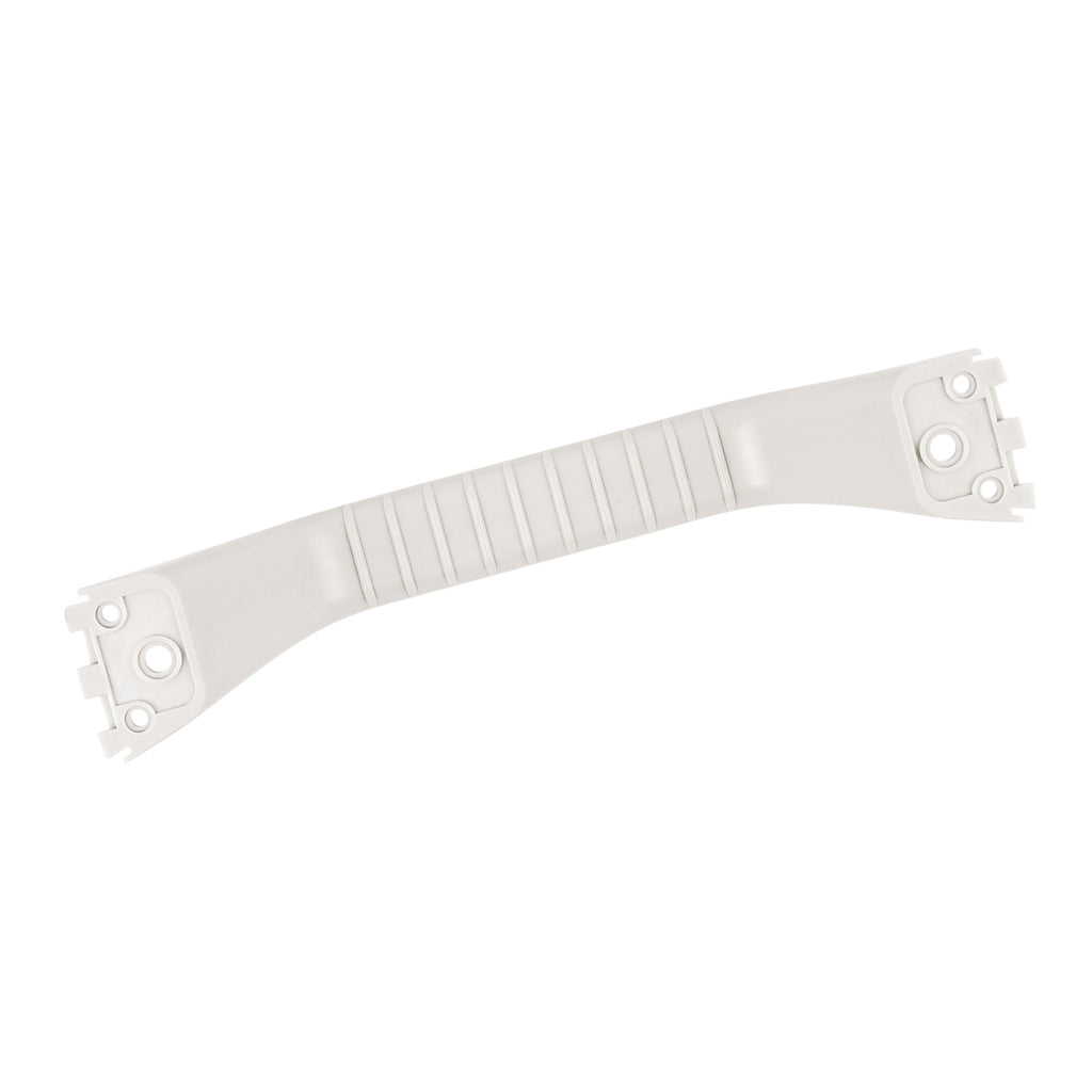 Wohnwagen Rangiergriff 180 mm aus solidem Kunststoff. Der Griff besteht aus zwei Teilen (Ober-, Unterseite) und lässt sich mit vier Spax- oder Blechschrauben unsichtbar am Wohnwagen verschrauben. Die Innenseite des Griffs ist mit einer Riffelung versehen, um einen sicheren Halt beim Rangieren zu gewährleisten.