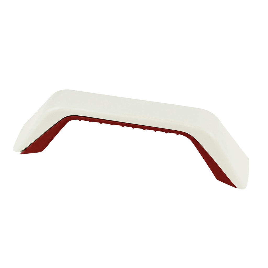 Wohnwagen Rangiergriff 180 mm aus solidem Kunststoff. Der Griff besteht aus zwei Teilen (Ober-, Unterseite) und lässt sich mit vier Spax- oder Blechschrauben unsichtbar am Wohnwagen verschrauben. Die Innenseite des Griffs ist mit einer Riffelung versehen, um einen sicheren Halt beim Rangieren zu gewährleisten.