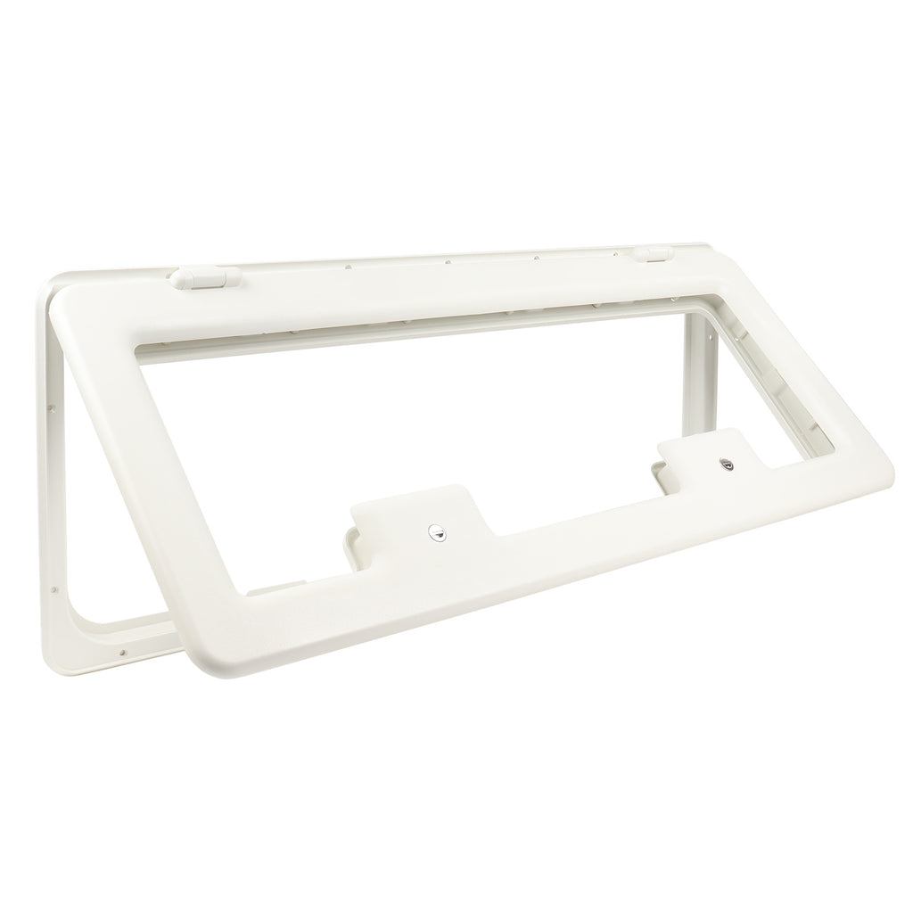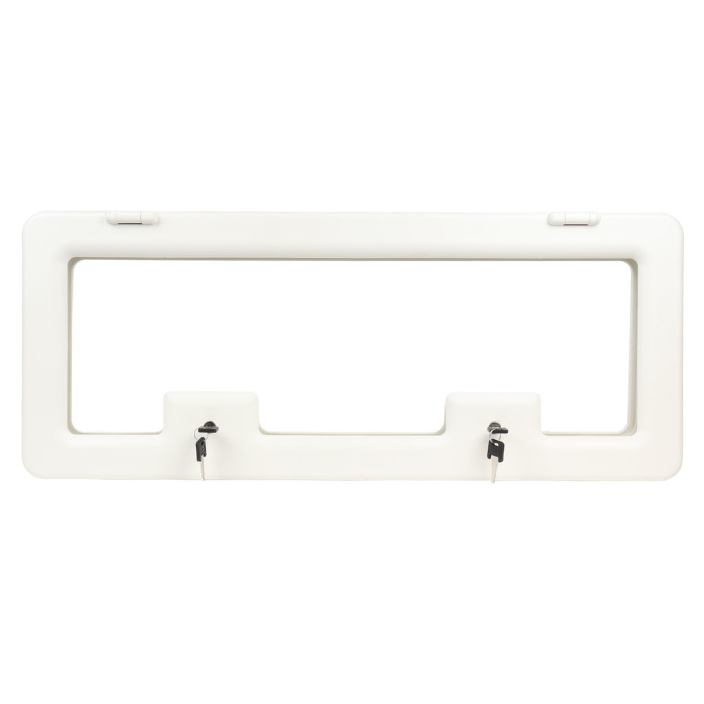 Universell passende Stauchfachklappe für Ihren Wohnwagen, Wohnmobil oder Campingbus. Das optisches Erscheinungsbild Ihres Fahrzeuges bleibt erhalten, da das ausgeschnittene Blech in den Klappenrahmen eingesetzt wird. Der innere Kunststoffrahmen schafft einen schönen Übergang zum Innenraum. Ein stabiles Schloß mit 2 Schlüsseln sorgt für Sicherheit. Für alle Wandstärken. Zum Ausschnittmaß bitte 2 cm für den Rahmen zusätzlich einkalkulieren. Die Serviceluke besteht aus hochwertigem und leichtem Kunststoff und ist daher sehr langlebig
