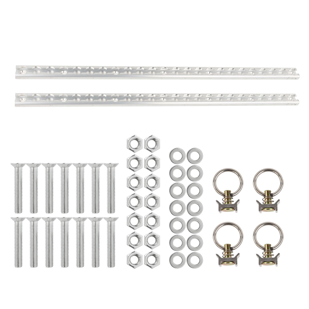 • Lieferumfang: 2 Airlineschienen (je 60cm); 4 Feder Fittings mit Ösen, Befestigungsmaterial